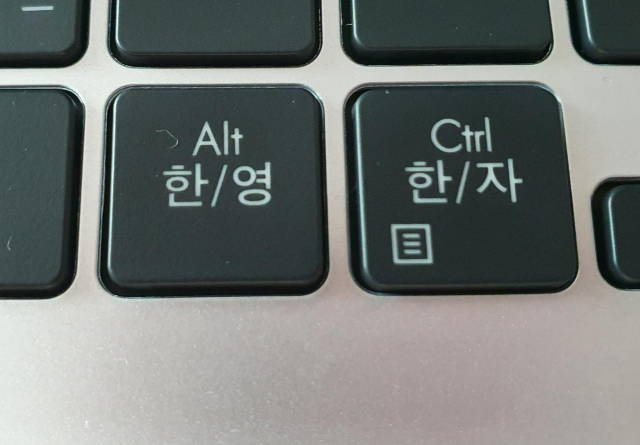 간단하게 제 키보드에 space를 기준으로 오른쪽에 보면 Alt랑 한/영을 같은 버튼으로 쓰고, Ctrl과 한자를 같은 버튼으로 쓰죠?