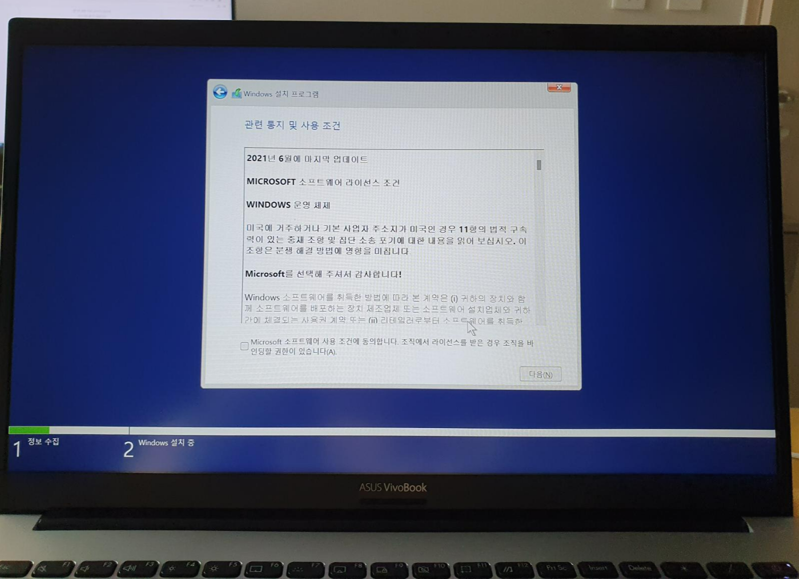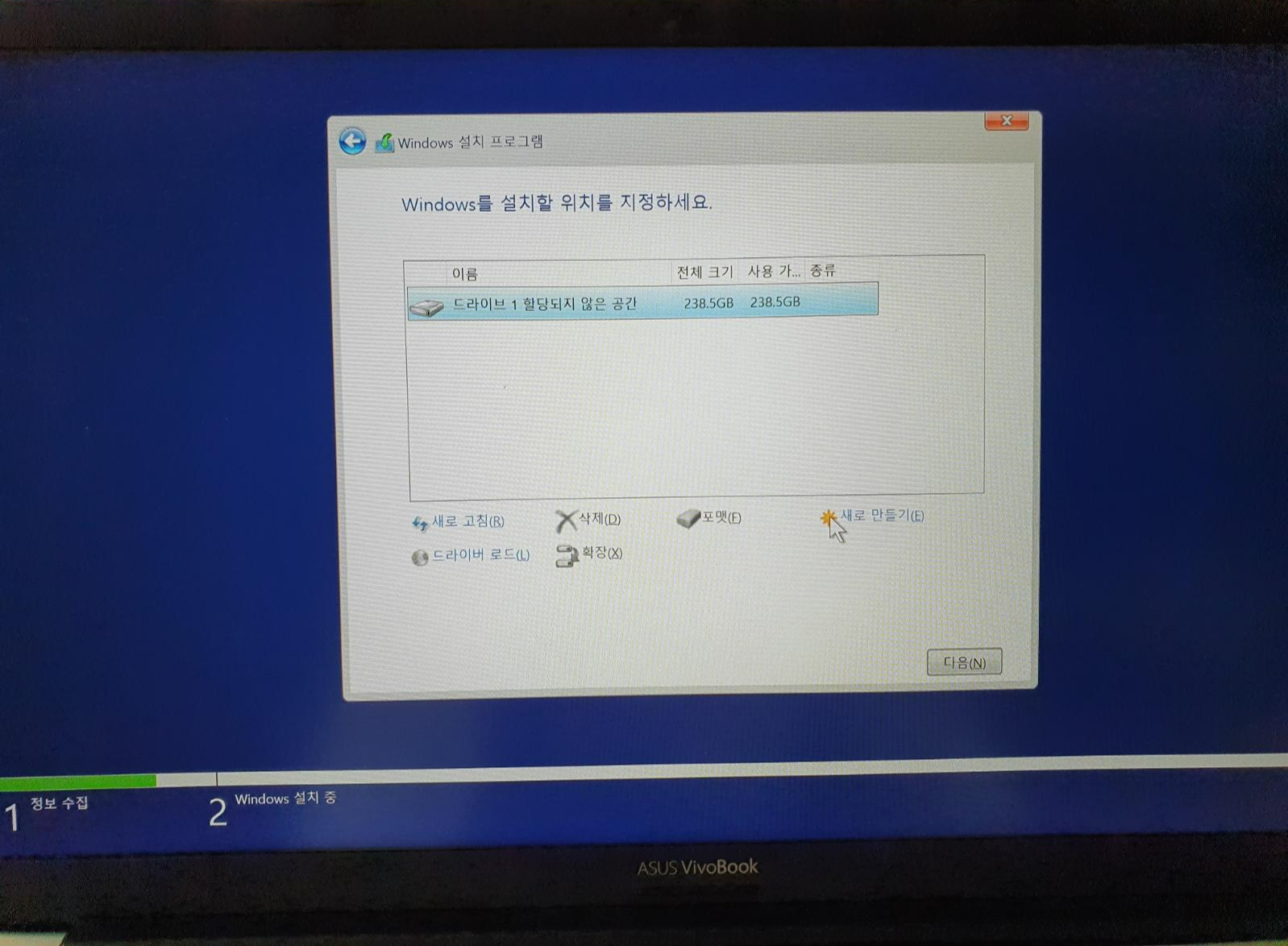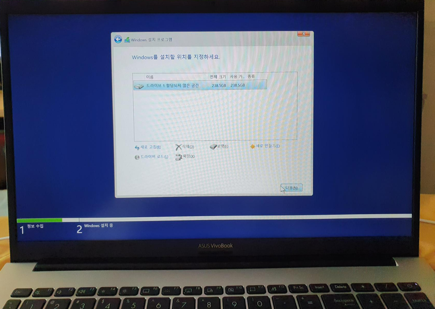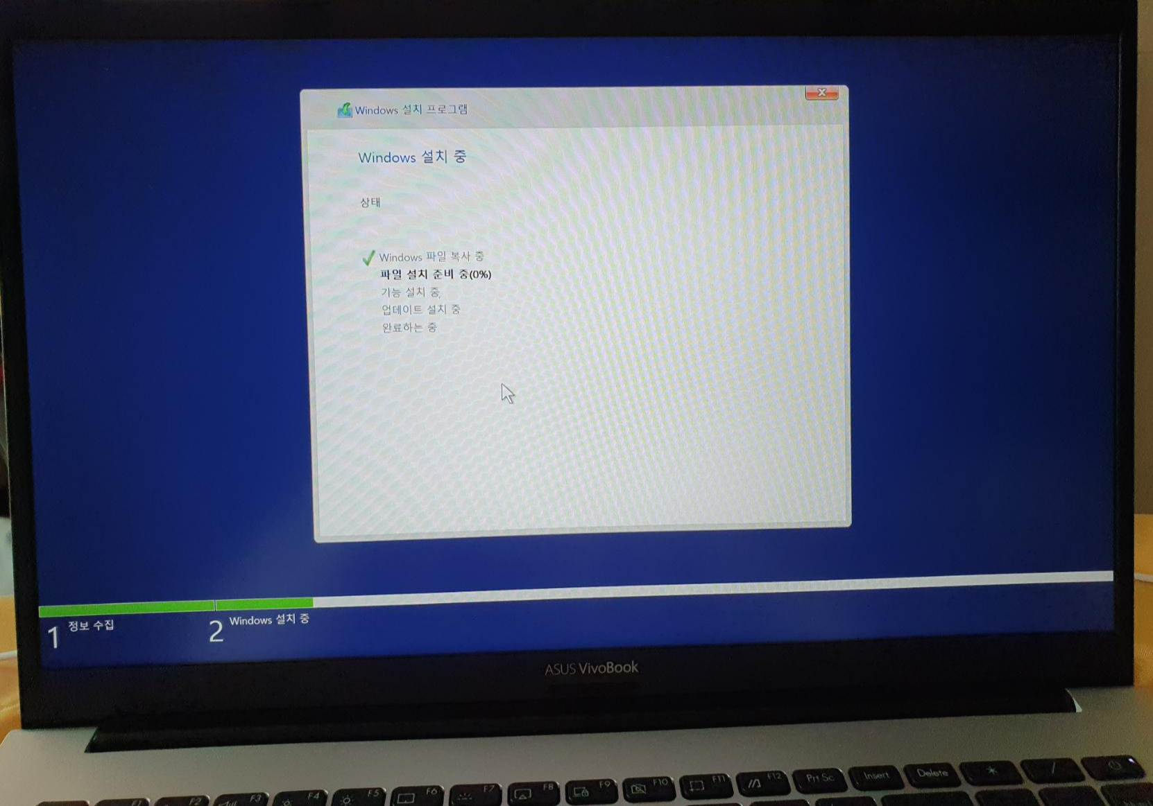 이게 되면 이제 2. 윈도우 설치 중으로 나옵니다~