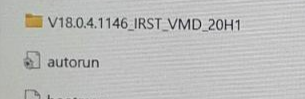 USB (D:) ESD-ISO 안에 요 밑에 있는 "V...._IRST_VMD_....."이라고 길게 적혀있는 노란색 네모 폴더를 찾아 클릭한 후