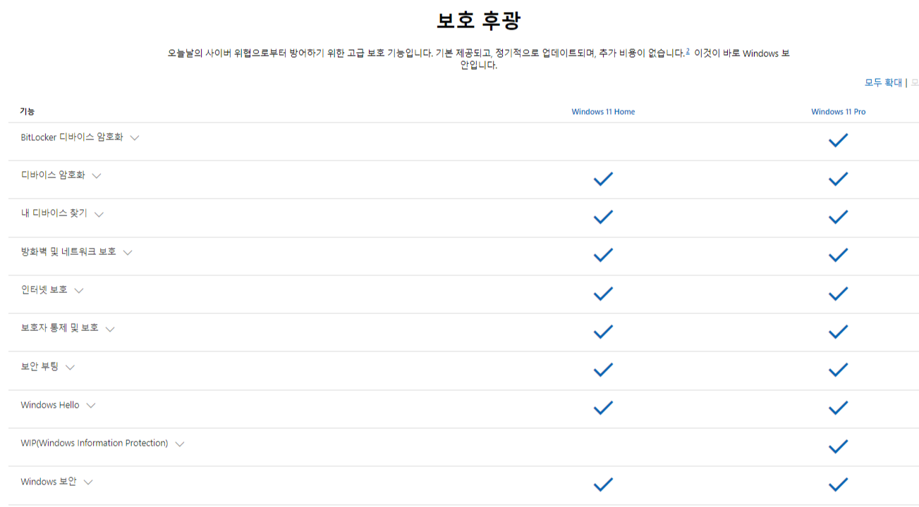 위에 보이는 것처럼 'Home'은 말 그대로 기본 기능이라고 보시면 되고, "Pro"는 비즈니스.... 그러니까 지금 윈도우 설치하는 노트북으로 비즈니스적인 일을 하려고 하시는 분들에게 필요한 기능들이 추가된 거다라고 보시면 될 것 같아요~