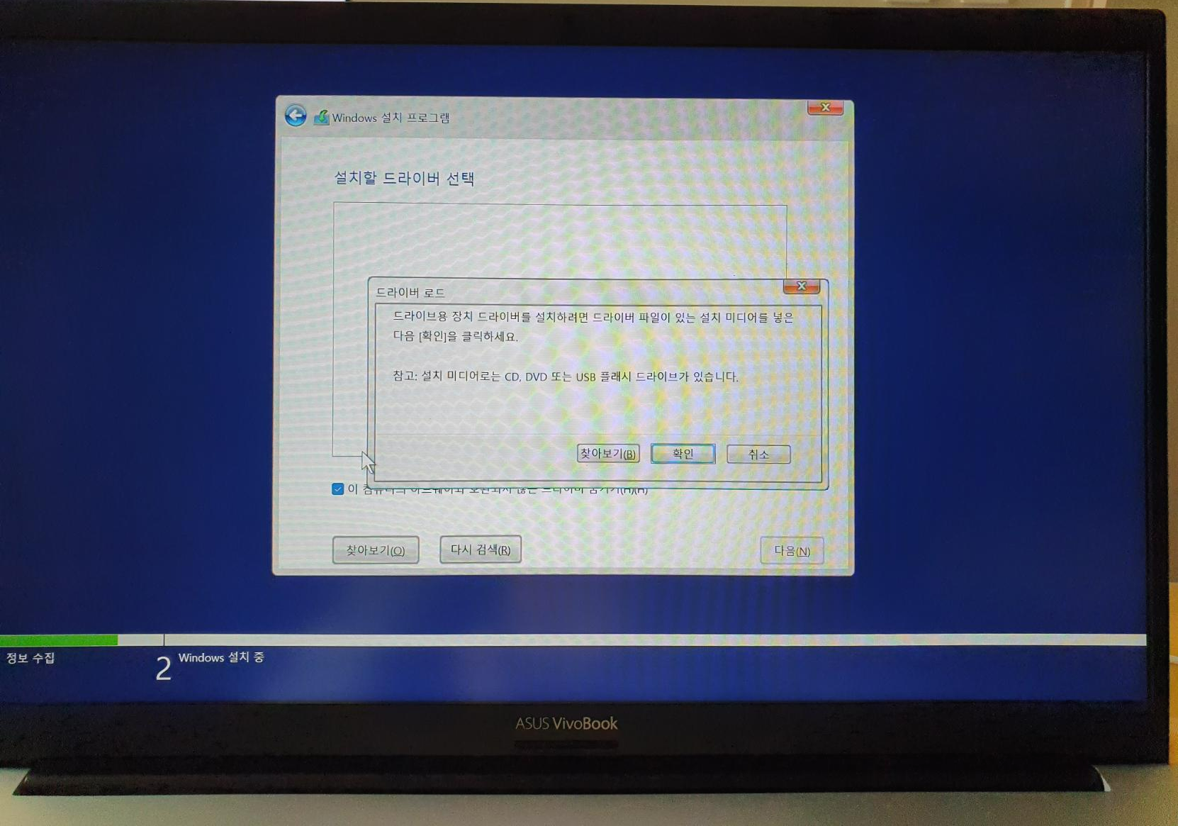 이제 드디어! 저는 엄청 애먹었으나 드라이버를 usb에 다 넣으신 분들은 아무렇지도 않게 쉽고 편안히 넘어갈 수 있는 드라이버 로드하는 구간이 왔습니다~ㅎㅎ