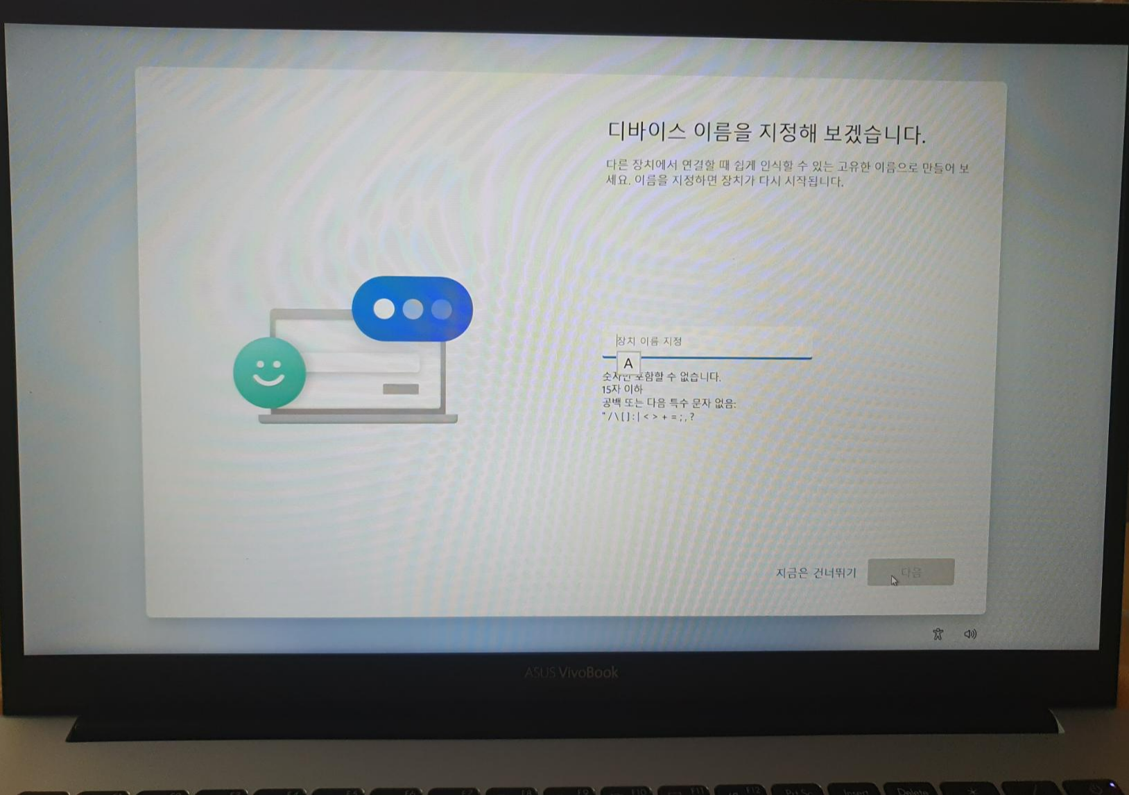 내가 사용할 pc이름 지정해주시고, 차례대로 따라가시면 윈도우 설치가 끝났습니다^^