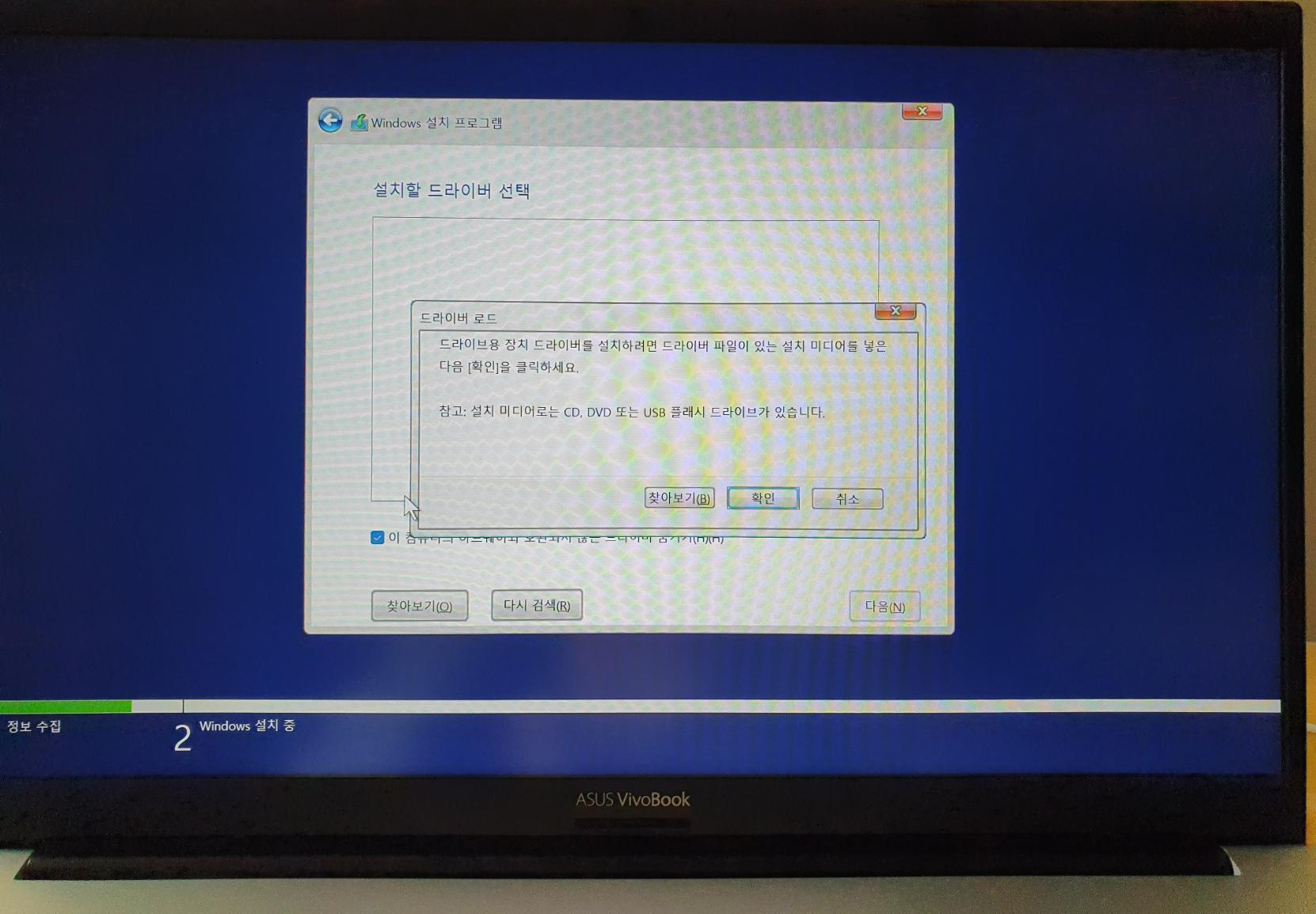 이 화면이 나오면 '드라이버 로드'를 클릭해주고, 오른쪽 화면처럼 '찾아보기'를 눌러줍니다.