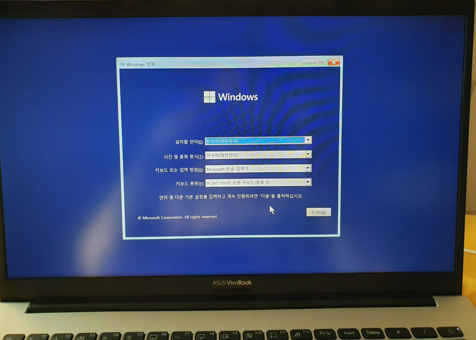 이번에는 usb를 꽂고 전원버튼 눌렀다가 다시 안돼서 끄고, 그렇게 계속 시도하다가 결국엔 아수스 고객센터에 전화해가지고 "윈도우 usb 있는데 설치 어떻게 하나요?"라고 물어봤거든요ㅠ